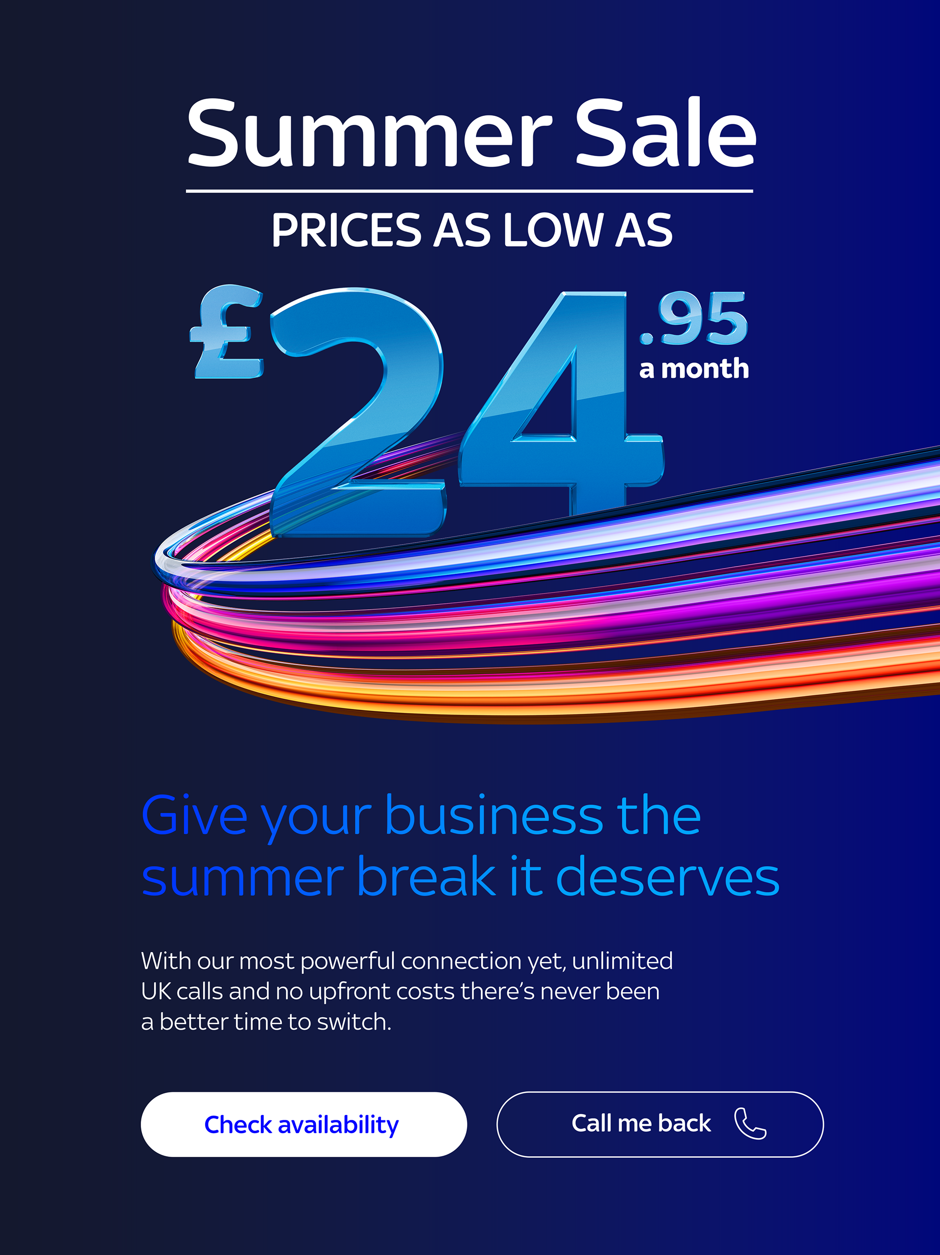 This campaign for the Sky Business Summer Sale was credited with 50% increase on response against BAU.